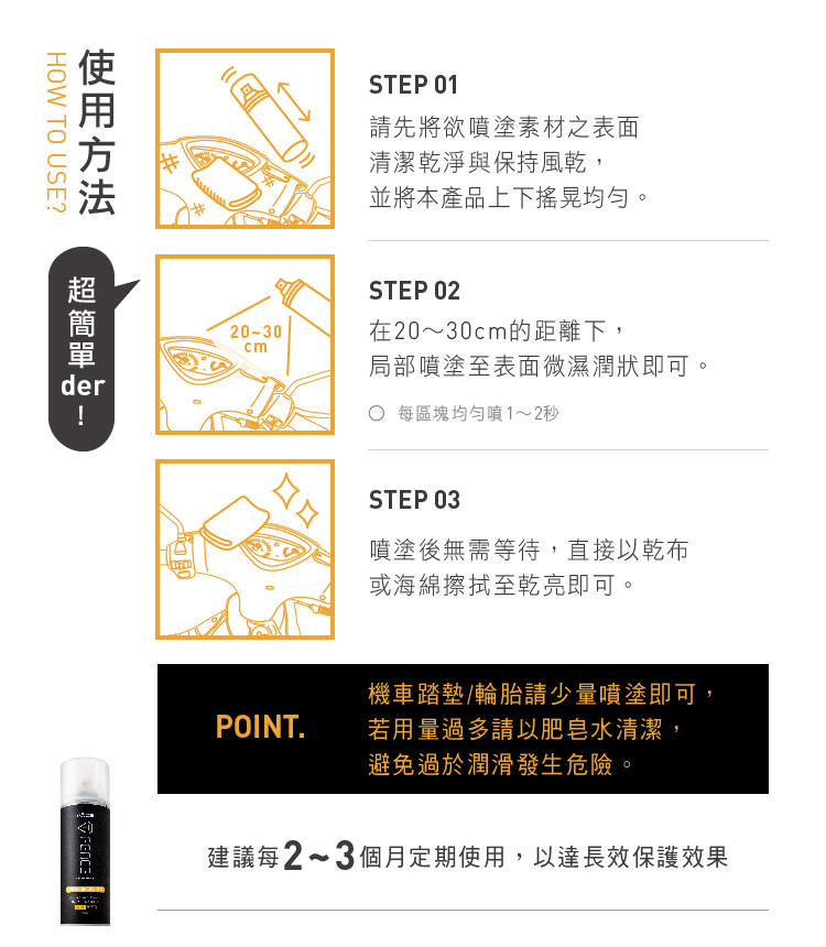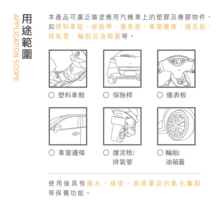 不含石油溶劑、不侵蝕車漆及素材,