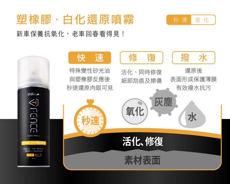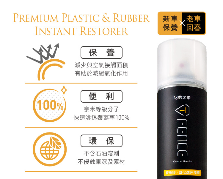 台灣 T-Fence 塑橡膠白化還原噴霧|塑料/輪胎/保險桿_250ml