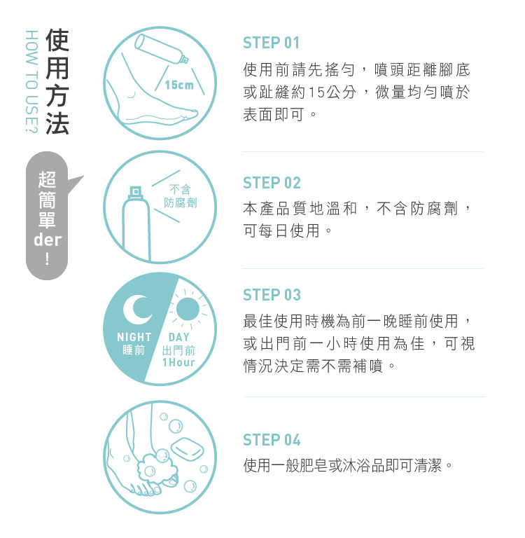 噴霧式止汗抗菌、長效乾爽是一定要的!
